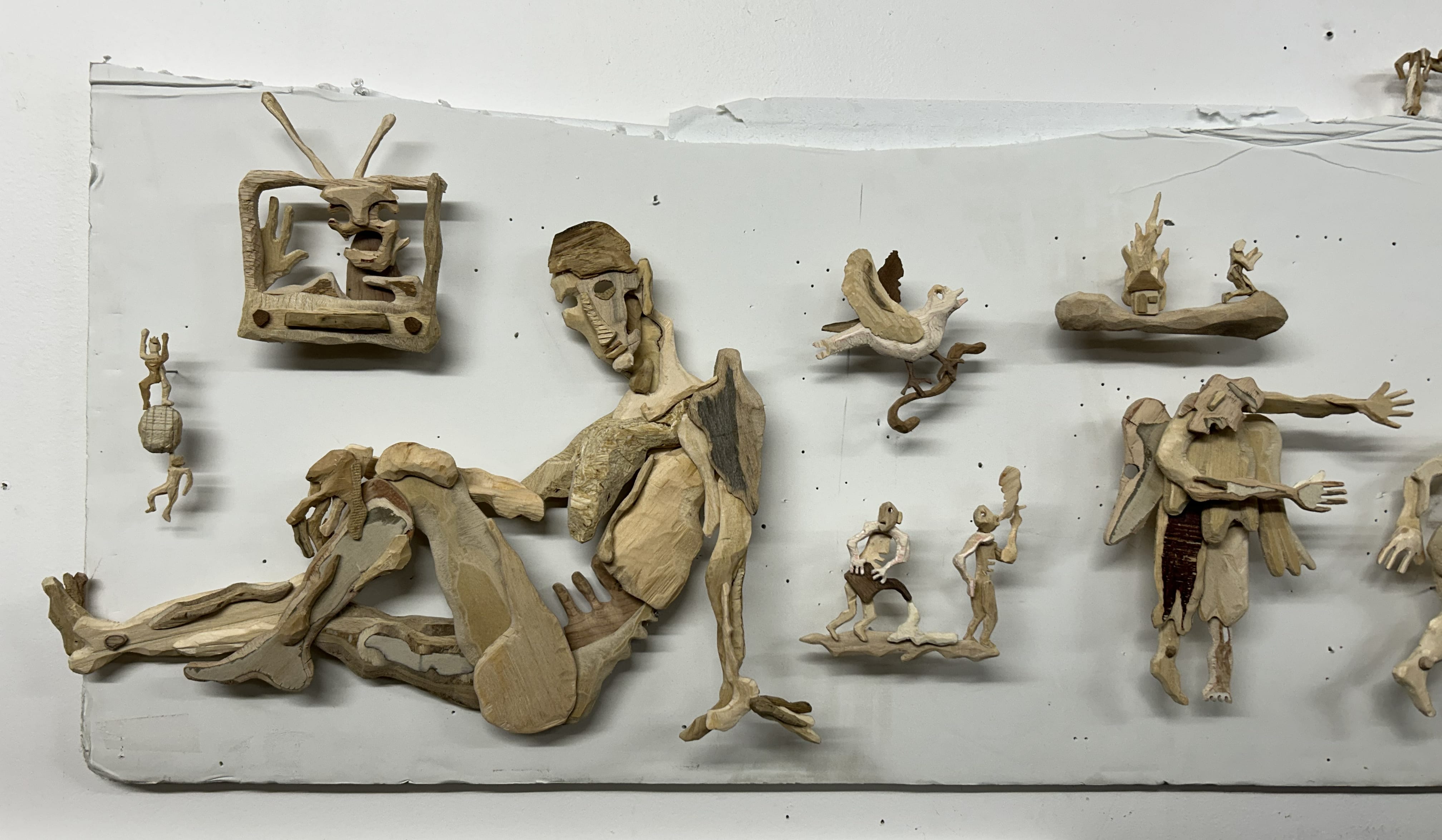 Motivated by a fascination with the open-endedness of waste systems, I create almost exclusively with found substrates. Over the past few years, I have developed my own supply chain of sculpture materials, sourcing scrapped wood from local cabinet makers, felled city trees, and the ground. While I am interested in the social aspect of peer-to-peer waste collection, I also find the discarded objects themselves to be imbued with meaning. Trash, to me, represents the most accurate reflection of our culture—a narrative untouched by self- mythologizing. Just as archaeologists study garbage to understand past societies, I believe our present-day refuse offers invaluable insights. Through my art, I aim to showcase and distort this refuse, creating tiny ruptures in our unprecedented waste cycle and challenging the legacy of our trash.